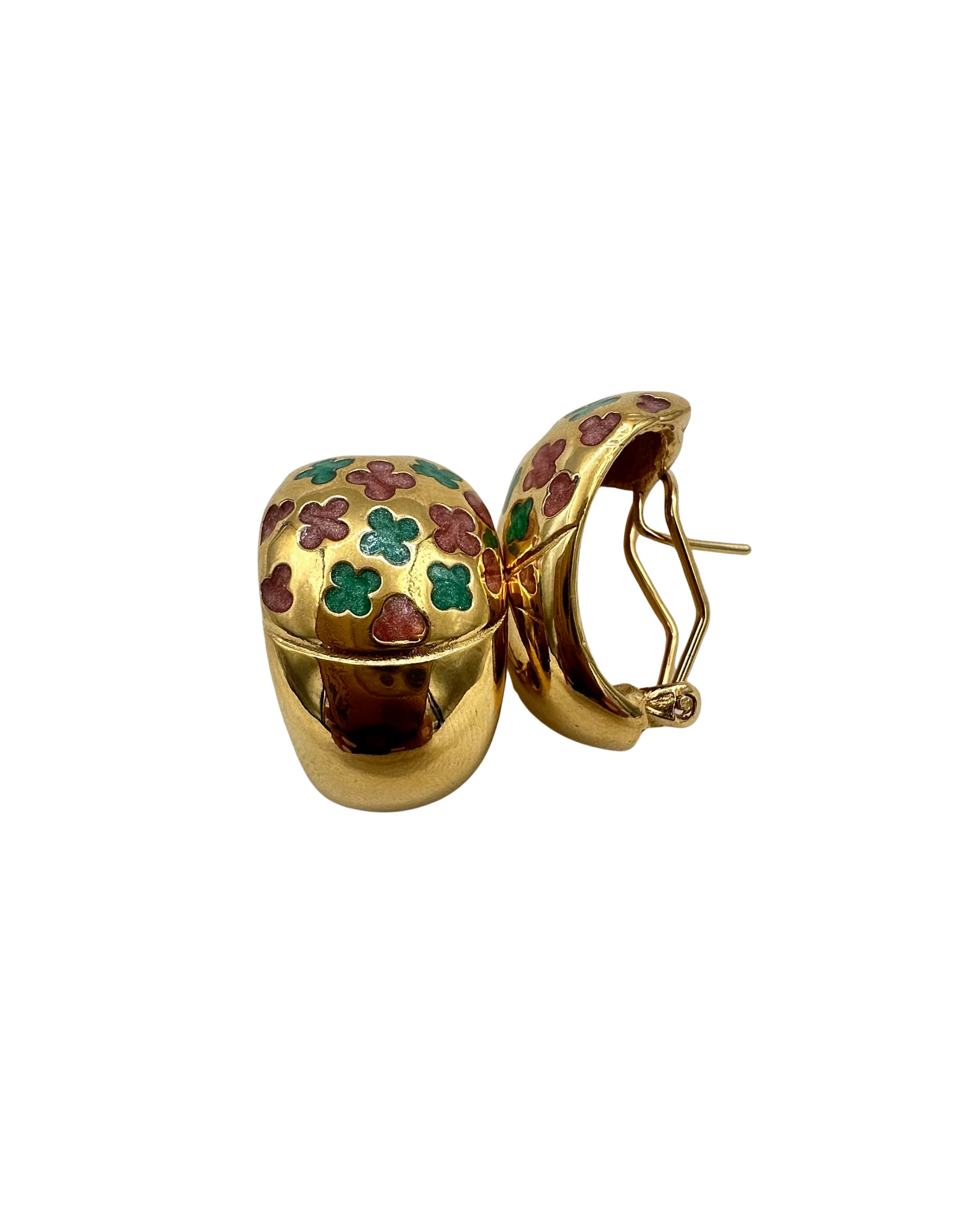 Un toque de alegría y estilo clásico en tus orejas. Estos aretes de latón con acabado vintage presentan delicadas flores de colores que aportan frescura y encanto a cualquier look. Livianos y versátiles, son perfectos para el día a día o para ocasiones especiales, agregando un detalle femenino y sofisticado a tu estilo.